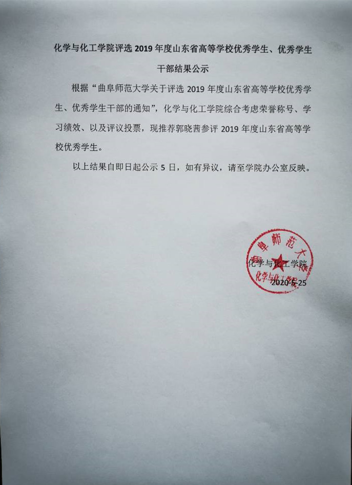 黄色仓库 评选2019年度山东省高等学校优秀学生、优秀学生干部结果公示