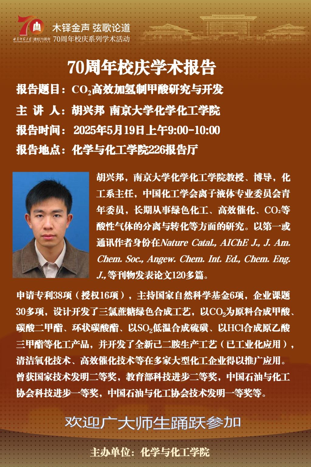 【5月19日】校庆70周年黄色仓库 系列学术报告四
