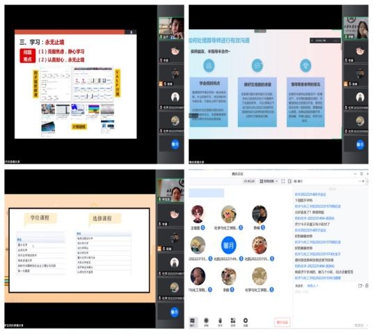 “学涯规划教育”9月15日下午,学院举办以学涯规划教育为主题的研究生学习经验交流会,参加此次会议的有学院研究生辅导员李文静、往届优秀毕业生2018级研究生赵齐、2021级在校研究生李宝凤、李鹤和陈峻以及2022级全体研究生新生,此次学习经验交流会由组织部副部长王增嘉主持。会议就学术、比赛、就业等热点问题进行了聚焦探讨,同时设置了答疑环节,现场对新生关注的入学报道、课程选择、校舍安排等问题进行了解答。