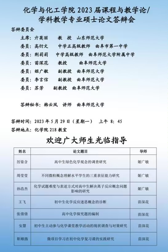 2023届课程与教学论/学科教学专业硕士论文答辩会