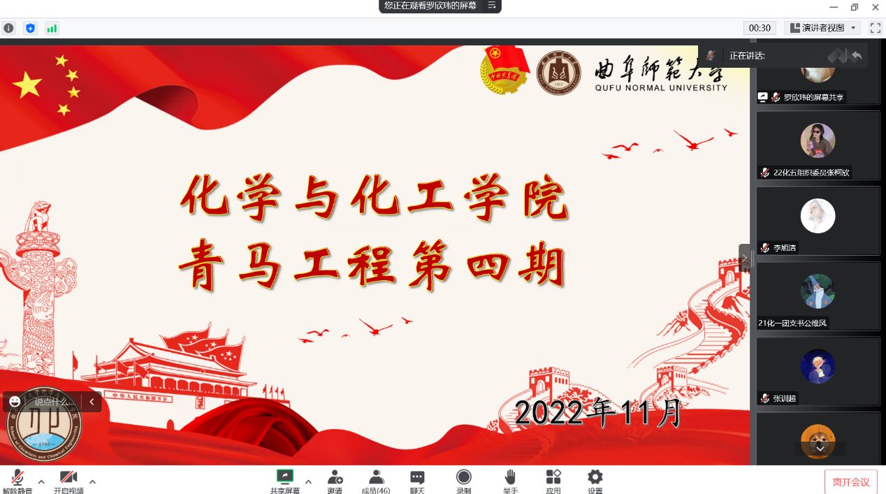 于线上开展2022-2023学年 “青马工程”大学生骨干培训班第四讲。本次培训由黄色仓库