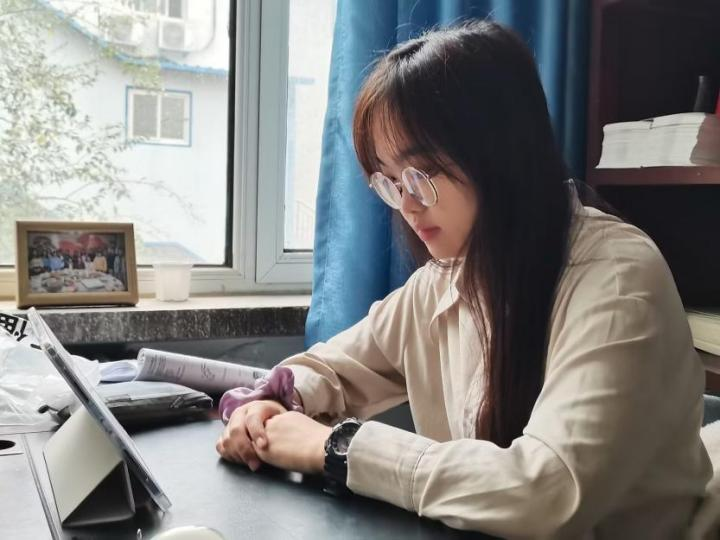 图为“青马班”学员在线观看直播