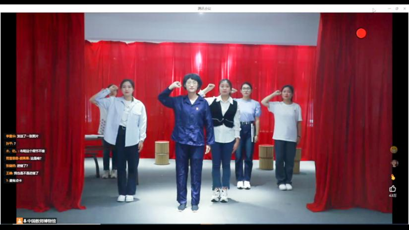 会议伊始,由教师博物馆成员进行微话剧表演,她们生动演绎“教书育人,敢为人先”的黄大年老师;“一生只为一事来”,的山区教师支月英;从笑颜如花到苍老憔悴的“燃灯校长”张桂梅……学生认真观看并在评论区留下所想所思。精彩的微话剧将现场气氛推向了高潮。