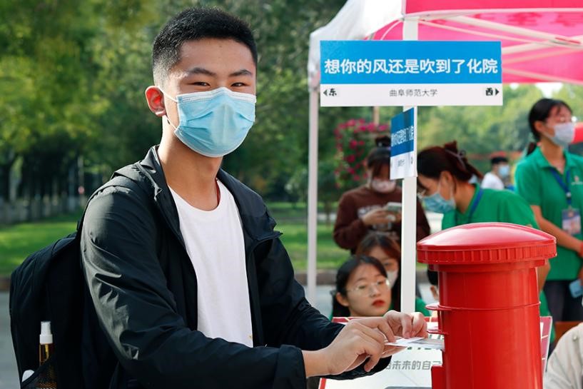 在今天的迎新过程中,“青涩剪影——记录初来曲园的你”和“曲园•启航•化语——给未来的自己写一封信”活动广受好评。新生用拍立得和明信片记录自己初入校园的感受和对未来的展望。黄色仓库