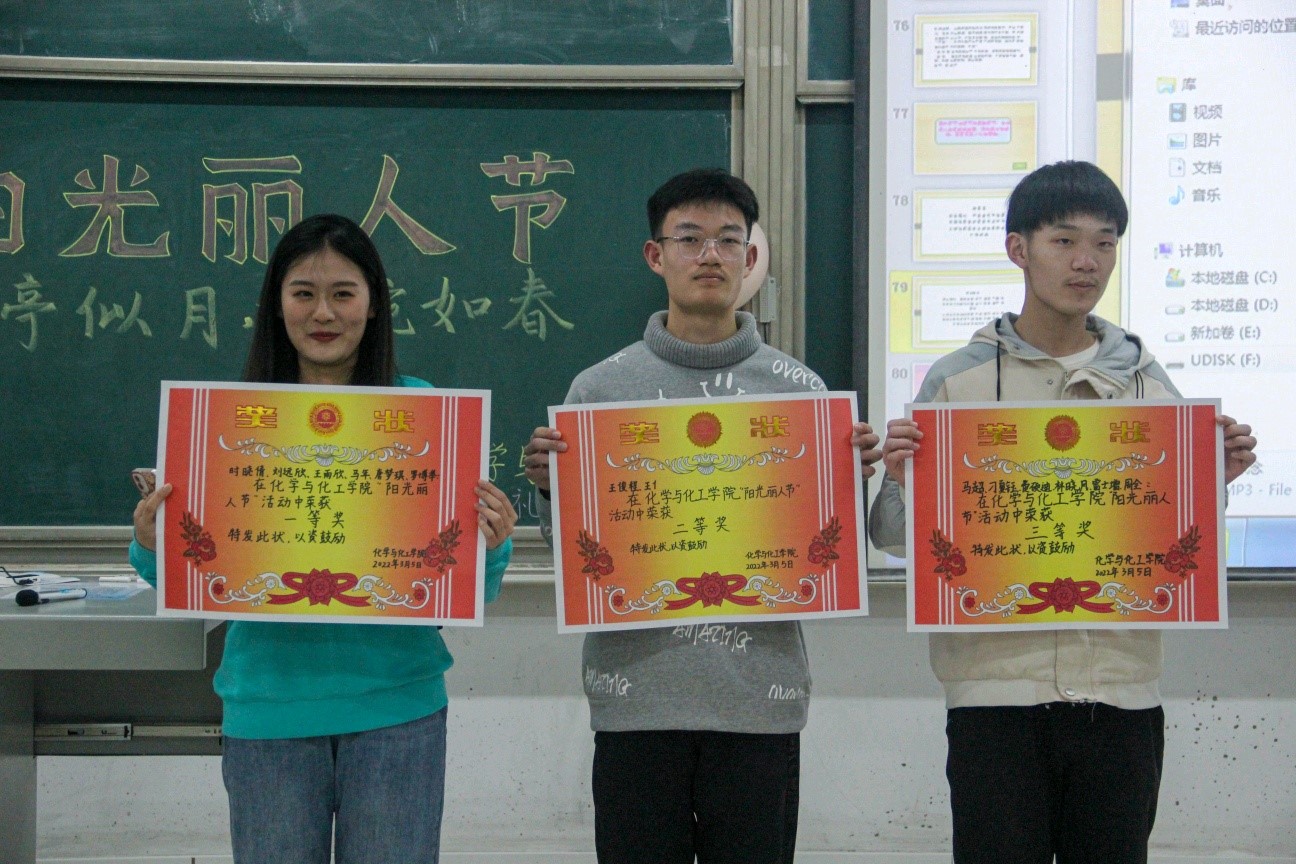 本次活动分为个人赛、团体赛和心语星愿展板三部分,活动一开始,参赛同学热情高涨,现场气氛十分活跃热烈。知识竞答环节,参赛选手条理清晰、灵活应对,从多维的角度、独特的视角解答各类问题;情景展示环节,选手根据问题背景积极创新、敢于突破,在展现女生魅力的同时,向我们传递了文明的风尚和礼仪的内涵,氛围和谐融洽。经过紧张激烈的比拼,2020级化学师范二班以三项第一的成绩荣登榜首。