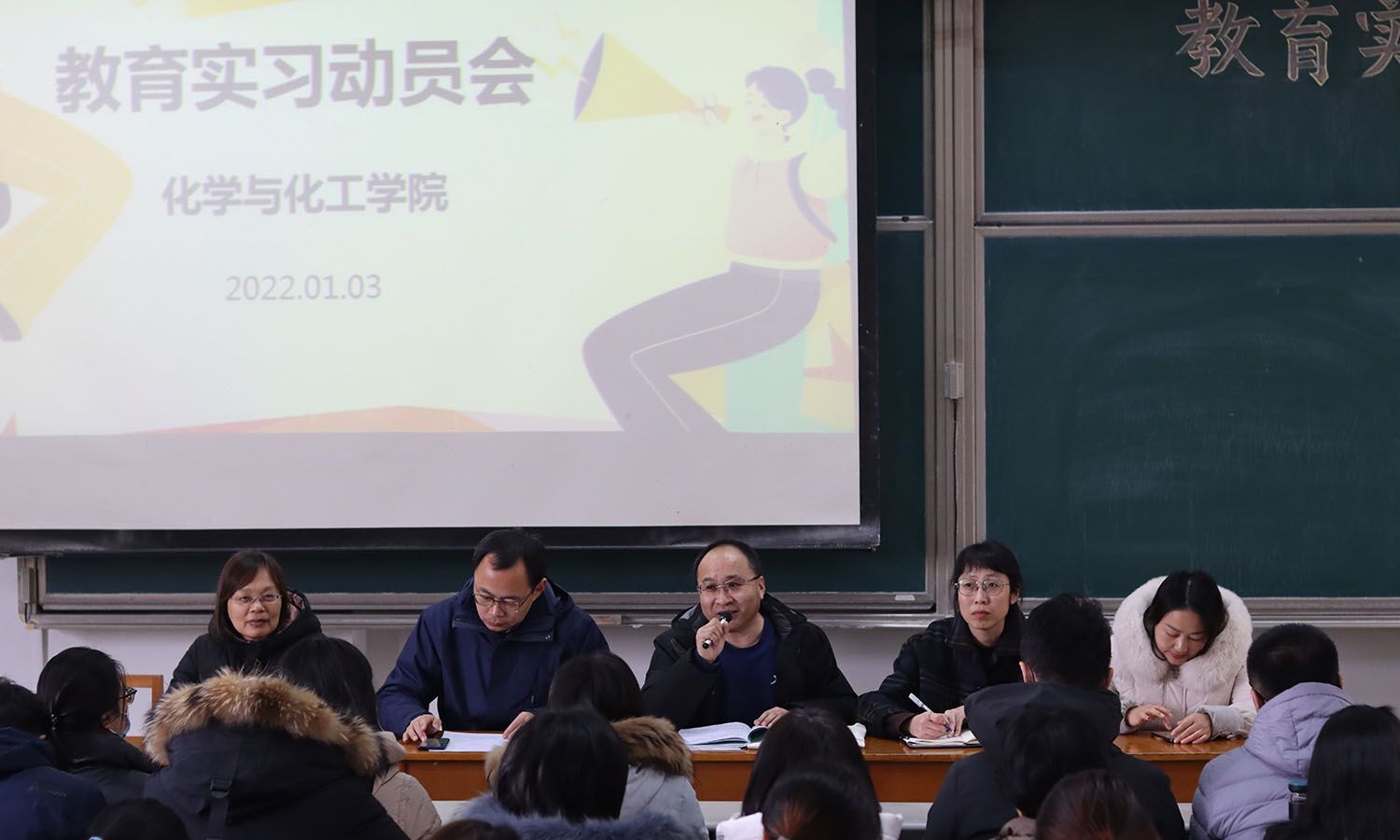 2022年教育实习的总体情况:此次教育实习基地数量达到了24个,是历年以来基地数量最多、指导教师数量最多的一次教育实习。随后对同学们的实习工作提出了四点要求:一是遵守实习学校规章制度,服从组织安排,保护好自己的人身与财产安全;二是团结协作,相互帮助,虚心请教;三是明确自己的双重身份,以老师的标准严格要求自己,言行举止要符合教师规范;四是做好充分的实习预备工作,积极树立学院师范生的良好形象。