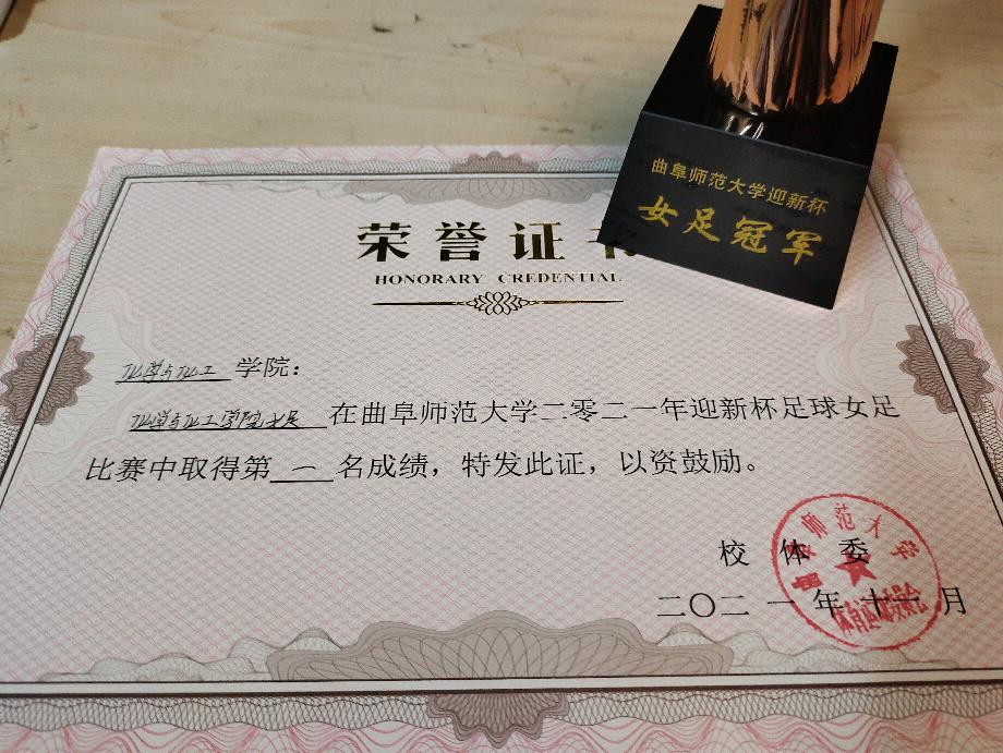 女子足球队最终以四战全胜的战绩勇摘“迎新杯”桂冠。