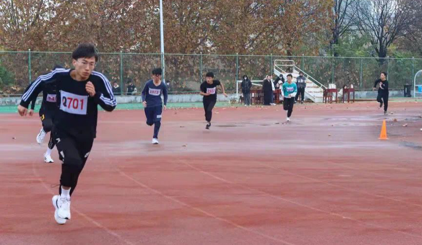 于校西田径场举办2021年冬季田径运动会。党委书记赵琪、党委副书记孙金玲、辅导员王亚平、毛艺霏、蒋君莅临现场。2020级、2021级全体同学参加本次运动会。