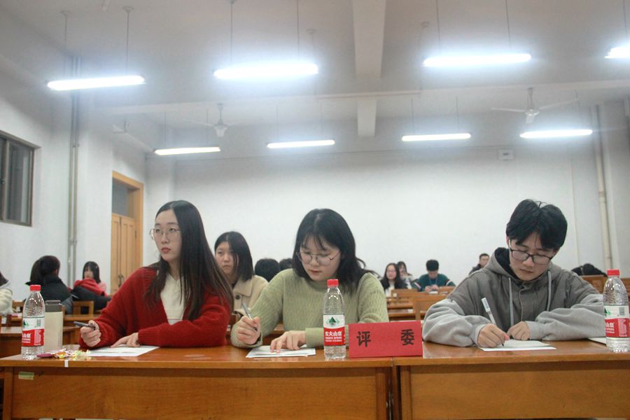 团委主办,学生会学习部承办的“舌上春秋,谁‘语’争锋”辩论赛决赛在综合楼305成功举办。校辩论队队长李艾嘉,校辩论队成员、化院辩论队队长王昊担任本次大赛评委。