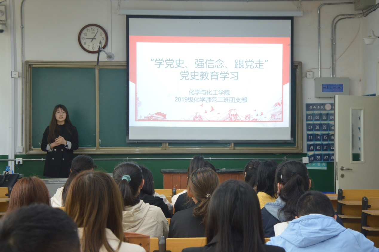 为庆贺中国共产党成立100周年,2019级化学(师范)二班团支部于4月24日9:00在黄色仓库