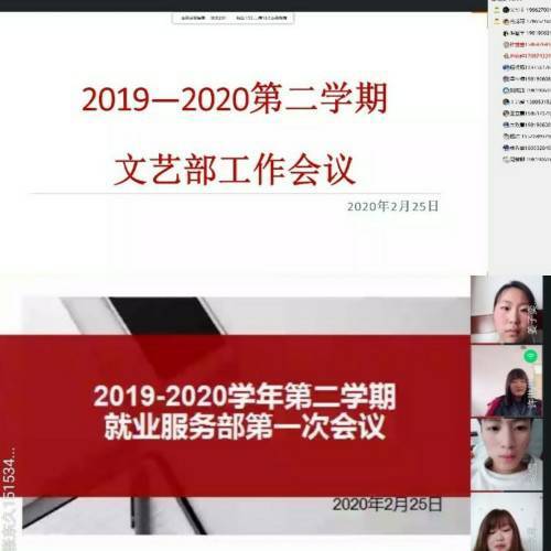 首先,由分管主席向分管部门传达了2019-2020学年第一次主席团会议的内容,以及对学生会在疫情出现后的积极表现的肯定,同时指出:在当前形势下,学生会一方面应结合工作实际,积极调整工作模式,对传统经典活动有序创新;另一方面,要关注因疫情影响学院学生的诉求而产生的变化,继续以服务学生为中心,设计满足学生需要、契合相关精神、符合有关要求的学生活动,提供针对性,增强实效性。随后,由各部门部长带领学生会成员对下一步的工作内容进行了详细的讨论,确定了以下几个方面:鼓励学生自主学习,充分利用网上资源在线听课,学院开通网络课程后,认真听课和参与考勤;阅读书籍增长知识,组织线上读书分享会;在家多做运动锻炼身体,提高自身免疫力等。最终,各部部长将具体计划反馈给分管主席,将在第二次主席团会议对工作计划进行商讨。