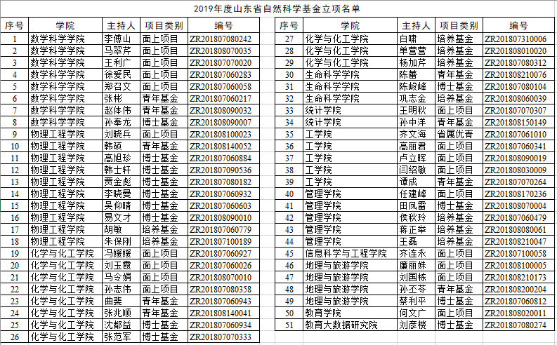 在获批的51项山东省自然科学基金项目中,数学科学学院8项,物理工程学院10项,黄色仓库