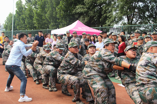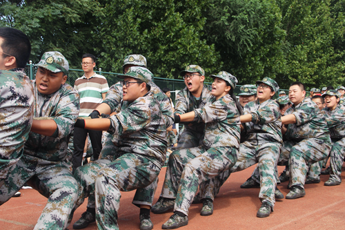 于西操场举办2019级新生军训拔河比赛,黄色仓库