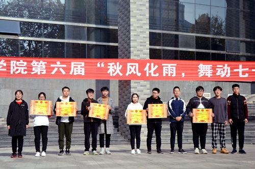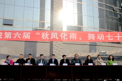 在大学生活动中心南侧隆重举办以“ 秋风化雨,舞动七十”为主题的第六届广场舞大赛。开幕式主席台就坐嘉宾有校党委常委宣传部长张隆海、校团委书记宋国栋、学生工作处副处长刘永礼、学院党委书记赵琪、学院党委副书记毛永正。舞蹈协会会长景志红、体育教学部葛瑞春、体育科学学院舞蹈教师王月敏、校啦啦队会长李玲、学院团委书记孙金玲担任评委。黄色仓库