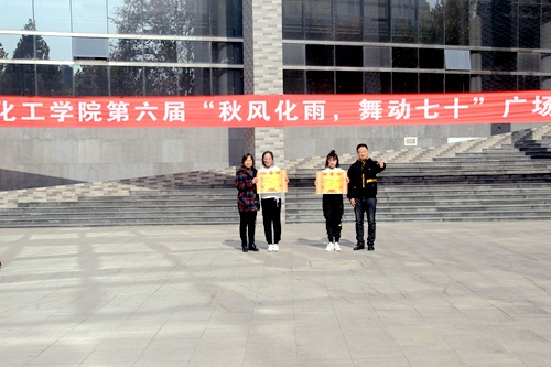 学子昂扬向上的风采。经过最终评定,2019级化学类二班、2019级化学类三班获得一等奖,二等奖3名,2018级应用化学班、2018级化学类一班、2019级化工与制药类二班、2018级化学类三班获得三等奖,2018级化学二班、2018级材料化学班、2019级化工与制药一班、2018级化学工程与工艺班、2019级公费师范生班获得优胜奖,学校及学院领导为获奖班级颁发奖状。第六届广场舞大赛在欢呼声中圆满结束,各班级有序离场。