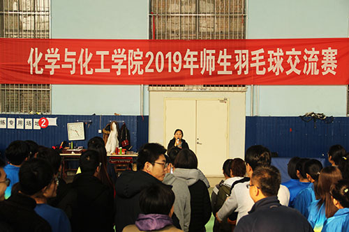 在体育科学学院举办首届师生羽毛球交流赛。本次比赛由学院党委书记赵琪担任裁判长,学院团委书记孙金玲主持了开幕式。