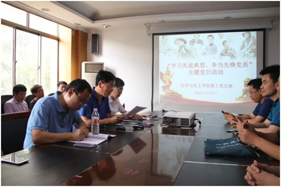 7月13日,教工党支部召开全体党员大会,党委书记赵琪以普通党员身份参加支部大会。活动开始,支部书记李平宣读了关于《中共中央关于追授郑德荣等7名同志“全国优秀共产党员”称号的决定》文件。对文件精神进行解读,要求全体党员在今后的工作中,要以郑德荣等7名同志的先进事迹为榜样,学习他们不忘初心、敢于担当、不断创新、锐意进取、攻坚克难、甘于奉献的精神,立足自身岗位职责,服务好师生,充分发挥党员先锋模范作用。不忘初心、牢记使命,争做新时代优秀的共产党员,真正把自己的责任担当落实到教书育人的点点滴滴,在新时代展现出我们化学教工党员的新气象、新担当、新作为。然后,全体党员认真观看了央视报道的7名同志的先进事迹,党员们再次被毕生追求马克思主义真理之光的郑德荣同志、执纪坚如铁担当铸忠诚的李泉新同志、一心只为老百姓过上好日子的姜仕坤同志、筑梦海天的强军先锋张超同志、把爱的种子播撒在祖国雪域高原的钟扬同志、生为难者解困扰死为他人送光明的许帅同志、国企“铁汉” 改革“闯将”张进同志等7名同志的先进事迹所深深感染。纷纷表示,在以后的工作中,要牢记初心,不忘使命,在教书育人和科研创新上争创先进,发挥模范带头作用,以实际行动践行一名共产党员的崇高使命和历史担当,做一名有理想信念、有道德情操、有扎实学识、有仁爱之心的“四有”好教师。最后,院党委书记赵琪同志对本次主题党日活动做了总结,要求党员要认真学习郑德荣等7名同志的先进事迹,认真进行反思和总结,要认真对照“四讲四有”、“四个合格”标准要求,学习先进、赶超先进、争当先进,进一步强化党性锻炼、提高党性修养。要对标先进典型,检验自己理想信念坚定不坚定,精神上缺不缺“钙”;检验自己有没有坚守共产党人的本色,经得起考验。要效仿先进典型,学习他们坚定“四个自信”,始终坚持“革命理想高于天”,自觉做共产主义远大理想和中国特色社会主义共同理想的坚定信仰者和忠实实践者;学习他们对党绝对忠诚,始终爱党、信党、护党、为党,牢固树立“四个意识”;学习他们勇于担当作为,始终坚持实践实干实效,锐意进取、攻坚克难,平常时刻看得出来、关键时刻冲得上去;学习他们坚守道德操守,始终保持共产党人的政治本色,清清白白做人,干干净净做事,带头弘扬清风正气,自党践行共产党人价值观。通过本次学习活动,要与做好本职工作紧密结合起来,要立足岗位、对标践行,认真落实好党的路线方针政策,为学院的发展贡献自己的力量,在建设孔子家乡一流大学新征程中当先锋、做表率。