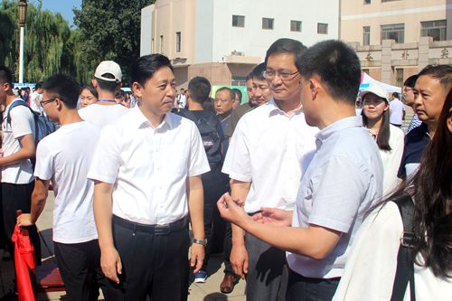 学校校长张洪海及相关部门有关领导亲临现场,指挥协调迎新工作。学院党委书记赵琪,党委副书记孙俊华,团委书记孙金玲,辅导员王亚平及新生辅导员助理陪同视察。孙俊华向张校长介绍了黄色仓库