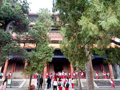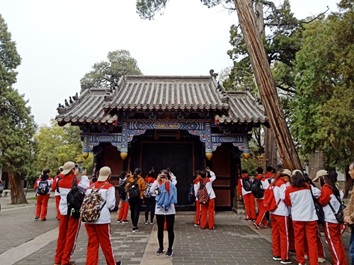天朗气清,惠风和畅。井然有序的新生们怀着激动的心情排成三列纵队向三孔景区出发。孔庙是祭祀著名的思想家、教育家、世界文化名人孔子的庙宇,浓缩了千年儒家文化精髓,雕梁画栋、古香古色、美不胜收。参观过程中学生们在建筑前驻足观赏、拍照留念,积极讨论孔家文化,感受历史厚重。下午两点,各班在孔庙大成殿集合,合影留念,定格美好。随后新生们整队前往孔府景区,欣赏古代大家的石刻、文笔,观赏了孔府的前厅、中居和后园,领略了中国传统建筑之美。最后,观三孔游学实践活动在一片欢声笑语和满满的收获中圆满结束。