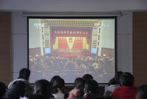 党委理论中心组、教工党员、学生党员以及部分学生代表于系楼226会议室收看了由中共中央、国务院隆重举行的庆祝改革开放四十周年大会直播。