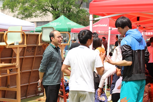 2016年春季运动会开始第二日赛程。学院党总支副书记孙俊华,团总支书记胡乃永,辅导员张乾坤、王亚平莅临比赛现场为黄色仓库