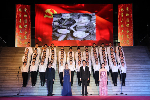 和颂队以一篇《党的旗帜永飞扬》的诵读将整个诗会推向高潮,他们朝气蓬勃,气势磅礴,凸显了新一代青年的潜力与壮志,展现了化院学子激情昂扬,勇于担当历史重任的精神风貌。