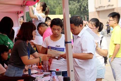领导及学生负责人现场指导整个迎新工作,耐心向新生及新生家长讲解黄色仓库概况