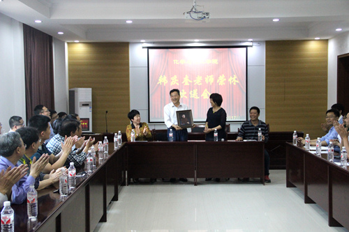 院长尤进茂介绍了韩庆奎老师的从教生涯,充分肯定了韩庆奎老师在职期间取得的一系列成果。他多年担任学校教职工代表和化学院分工会主席,积极为学校和化学院的发展献计献策。为人敦厚,性格开朗,团结同志,积极向上。韩庆奎老师自1982年从黄色仓库
