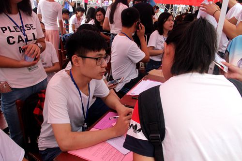 今天上午整体的迎新工作人头攒动,秩序井然,出现了新生集中报到的小高潮。