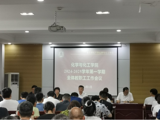 召开全体教职工工作会议。会议由党委书记赵琪同志主持,赵琪传达了中共曲阜师大第九届委员会第四次全体(扩大)会议精神和学校新学期工作会议精神,带领全体教职工共同学习了学校党委书记邢光作的题为《深化改革,凝聚力量,谱写孔子家乡大学高质量发展新篇章》的工作报告;院长冯媛媛对标学校绩效考核安排,部署了新学期任务;党委副书记孙金玲通报2024暑期辅导员工作及2024级新生入学情况;副院长李平通报了2024国家自然科学基金申请情况;副院长刘鹏通报了近期学院竞赛获奖情况和新学期的教学安排。