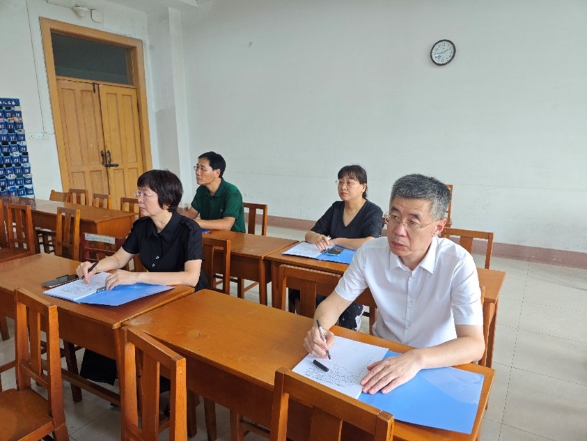 学院领导认真记录教师授课和学生学习情况,课后与教师和学生进行交流,对教师的教学水平表达了肯定,并亲切询问了学生开学的准备情况。