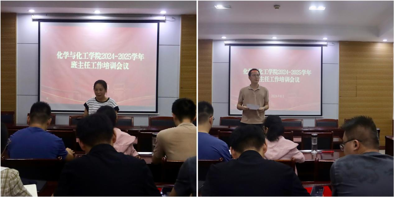 于8月28日下午在化学楼226会议室举行2024-2025学年班主任工作培训会议。参加本次会议的有学院团委书记王亚平、上届班主任蒋原野、韩云凤和新聘任的8位班主任,会议由学院团委书记王亚平主持。