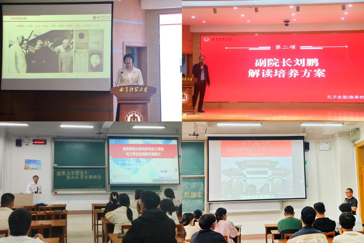 活动伊始,院长冯媛媛在树立理想信念、锤炼学习能力、坚定勇毅前行三个方面为新生讲述了大学生活的重要性,帮助新生打下良好思想基础。随后,副院长刘鹏为大家讲解了化学(师范)专业的培养方案,帮助新生明晰大学四年的学业规划。各教研室主任也分别给同学们解读了材料化学专业和化学工程与工艺专业的培养方案。最后,2023级优秀学生代表张安悦、曹一凡和王锡琳围绕学习生活、课外组织等方面为2024级新生进行了详细的介绍。新生们聆听了师哥师姐分享的经验并积极互动,现场气氛融洽。