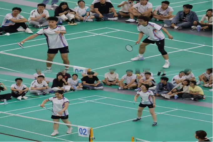 本次羽毛球赛以混合团体赛形式进行,设男单、女单、男双、女双、混双五类项目。赛场上,选手们配合默契、全力拼搏:优势局中,大一新生登场磨炼意志,传承球队精神;劣势局里,高年级同学凭借精湛技艺力挽狂澜,彰显学院拼搏进取、永不言败的风采。在小组赛中,学院先后与心理学院、音乐学院激烈切磋,并以小组第一晋级,最后在与文学院的决赛中奋力拼搏,最终摘得团体冠军,用汗水与协作书写了属于学院的荣耀篇章。