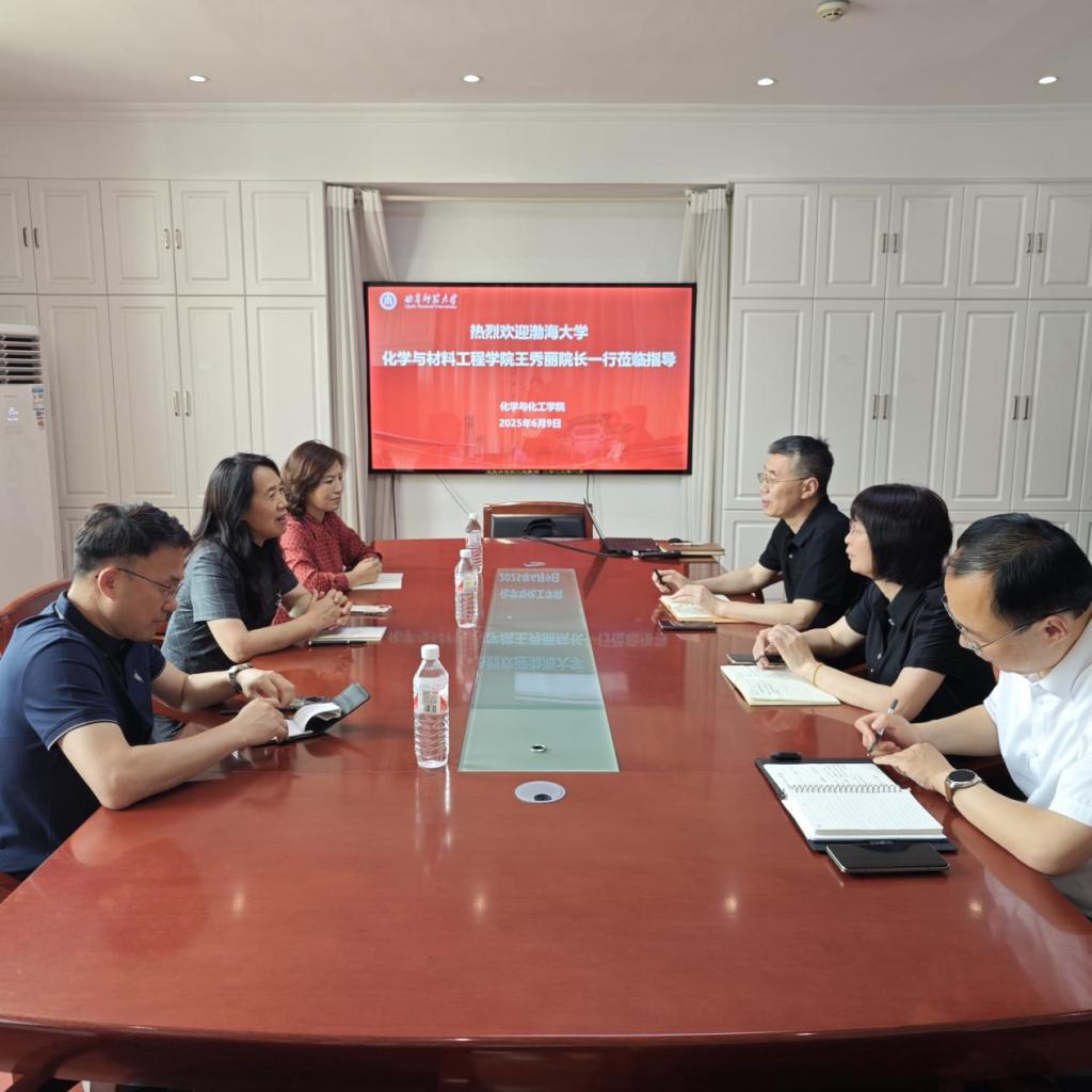 党委书记赵琪代表学院对王秀丽院长的到来表示热烈欢迎,并全面介绍了学院近年来的发展概况、学科布局特色以及在专业转型及产教融合等方面进行的积极探索与取得的成效。随后双方聚焦当前化学、材料、化工学科发展的前沿趋势、面临的共性挑战,特别是高层次人才引育、重大科研项目联合攻关、优质教学资源共享、拔尖人才培养等议题,进行了坦诚而富有建设性的意见交换,现场交流气氛活跃。