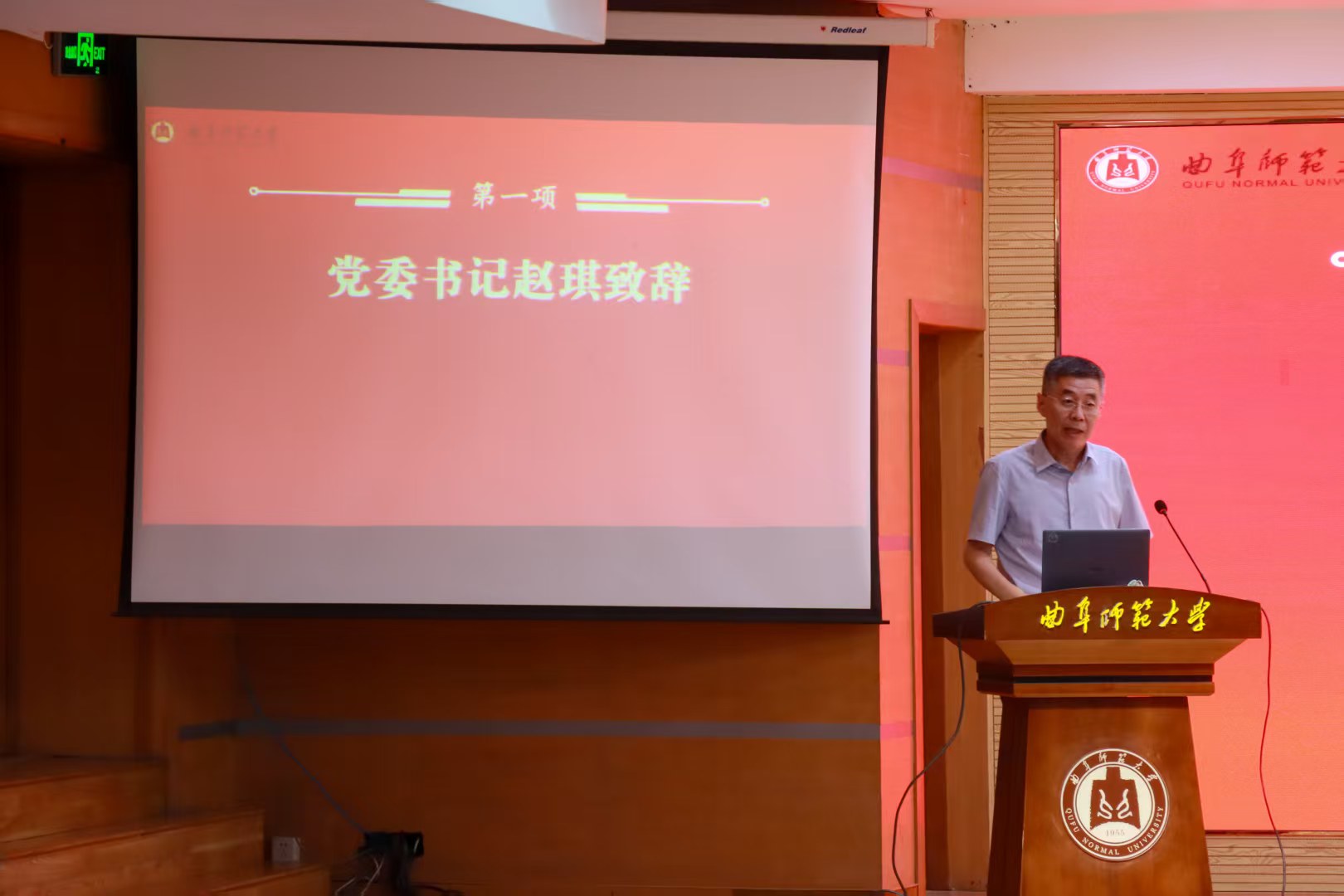 于孔子会堂召开2025级新生家长见面会。参加此次会议的有学院党委书记赵琪、院长冯媛媛、党委副书记孙金玲、副院长李平、副院长刘鹏、新生辅导员、2025级全体班主任及部分新生家长。会议由学院团委书记王亚平主持。