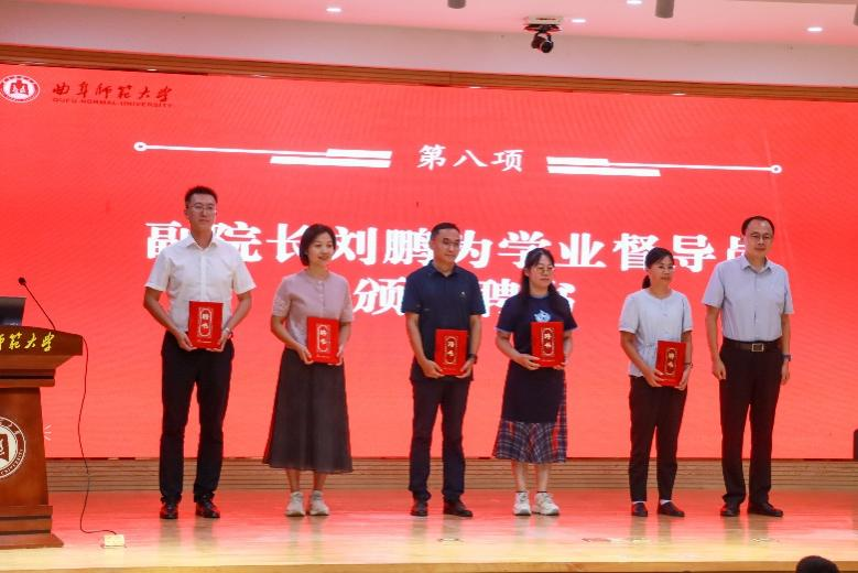 最后,由工作人员宣读家长委员会成员名单和学院督导员名单,学院副院长李平为家长委员会成员颁发聘书,副院长刘鹏为学业督导员颁发聘书。