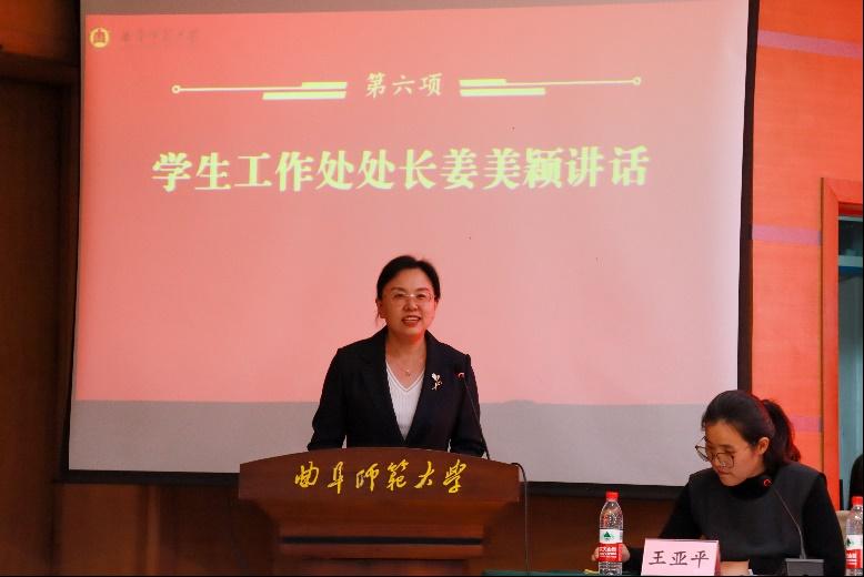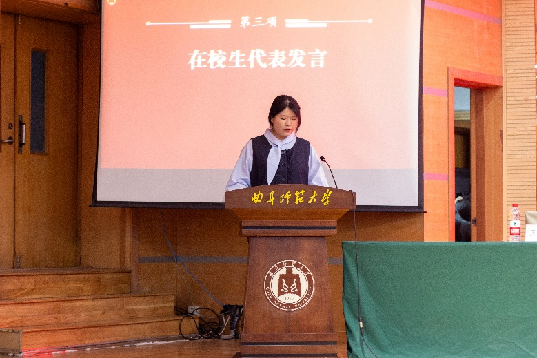 接着,在校生代表王锡琳向新生分享了生活与学习中的点滴感悟,提出学习要点滴积累、脚踏实地。