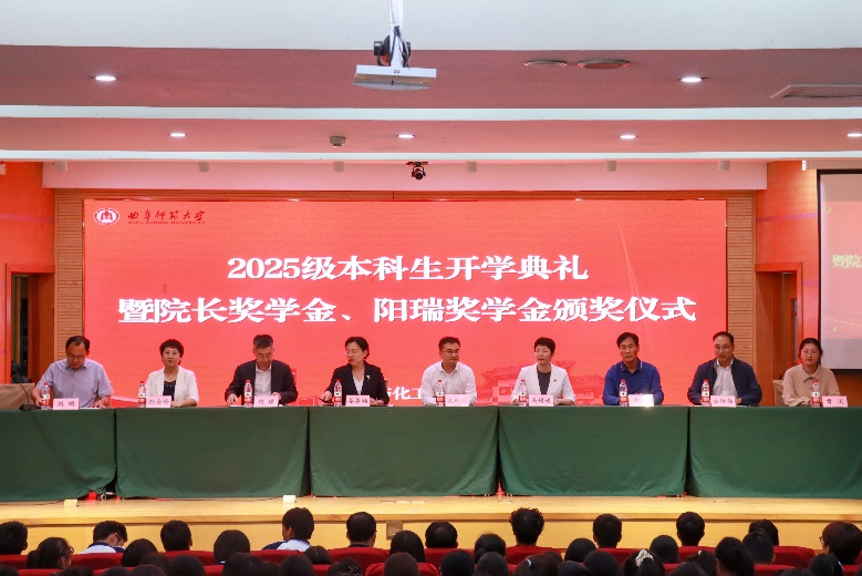 党委书记赵琪、院长冯媛媛、党委副书记孙金玲、副院长李平、刘鹏、团委书记王亚平、教师代表公培伟、2025级辅导员曾川出席典礼,2025级全体本科生及奖学金获奖同学共同参会。本次典礼由团委书记王亚平主持。