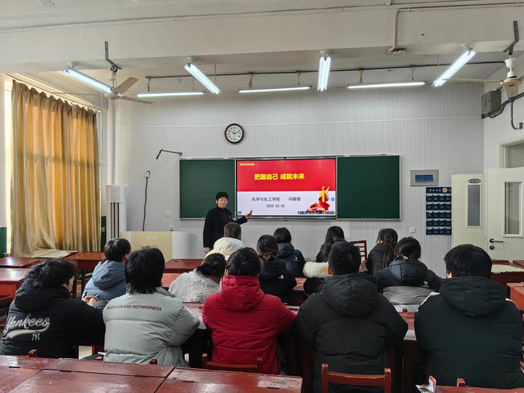 (通讯员:夏玉鑫 摄影:夏玉鑫)2025年3月5日下午,学院院长冯媛媛教授以“把握自己,成就未来”为主题,为学院物理化学专业研究生讲授了一堂内涵深刻、启迪思想的思政课。