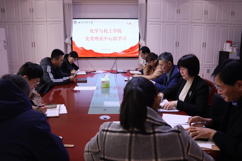 党委理论学习中心组在化学院209会议室举行了党委理论学习中心组2025年度第一次集中学习研讨。本次学习的主要内容为《2025年山东省政府工作报告》。会议由学院党委书记赵琪主持,党委理论学习中心组成员参加。
