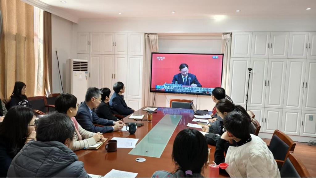 会上集体学习了《深入学习贯彻党的二十届四中全会精神》内容,收看了《中共中央新闻发布会介绍和解读党的二十届四中全会精神》。中心组所有成员先后发言。每位成员结合自身所在岗位,对深入学习贯彻党的二十届四中全会精神谈了自己的看法以及下一步工作思考。