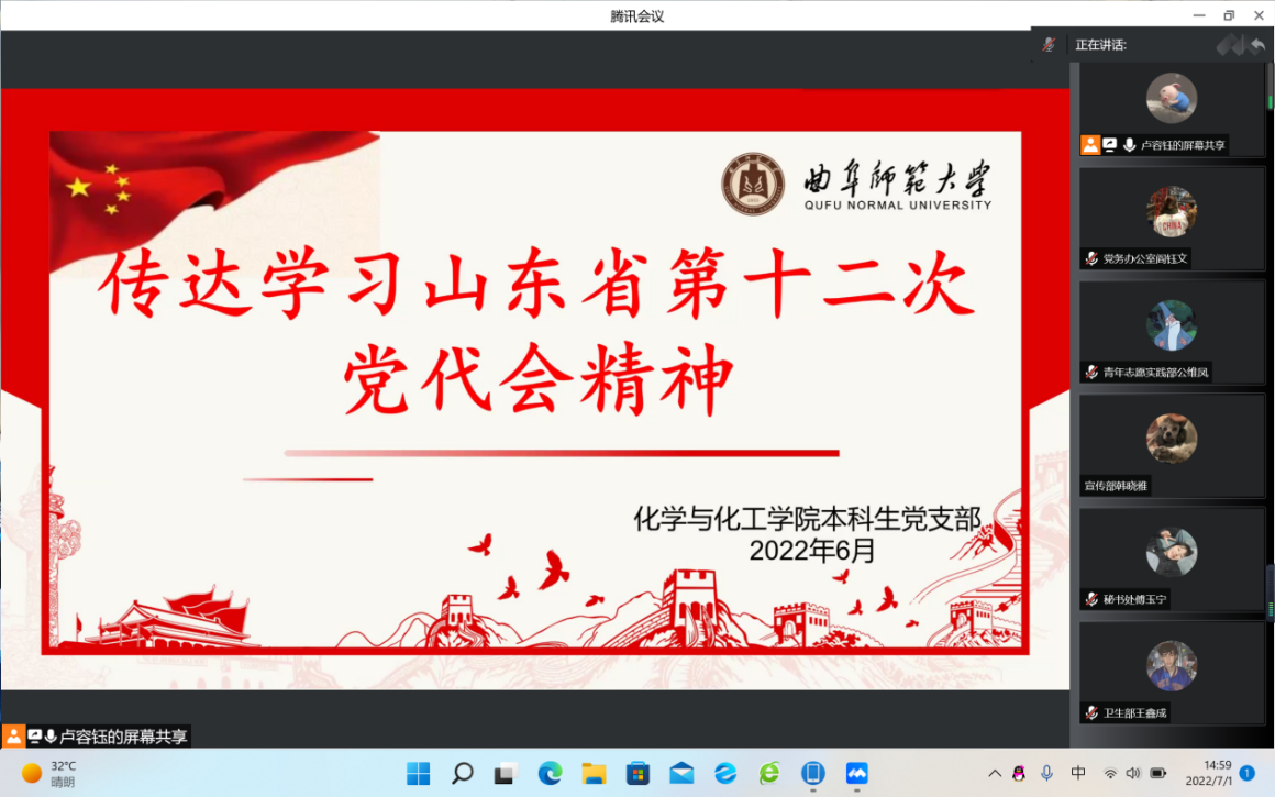 7月1日,学院本科生党支部于腾讯会议组织广大师生党员集中参观“红色云展厅”,个人自行借助于5G云技术观看学习各地革命博物馆、纪念馆、党史馆、烈士陵园等,并作分享交流。