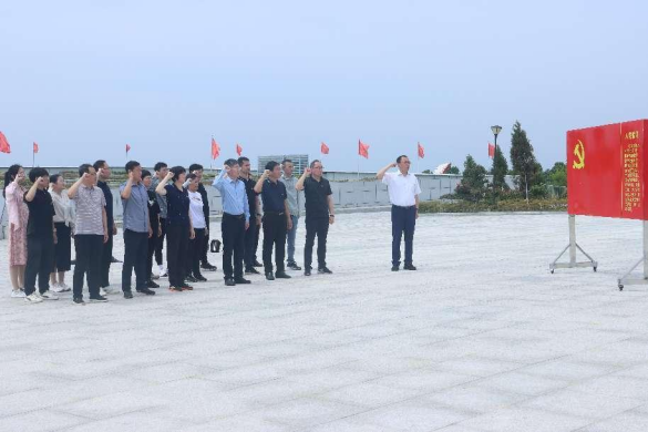 在革命烈士纪念碑前,学院副院长刘鹏带领大家面向党旗庄严宣誓。重温入党誓词,铿锵有力的誓言展现出全体人员不忘初心、牢记使命的信心和决心。