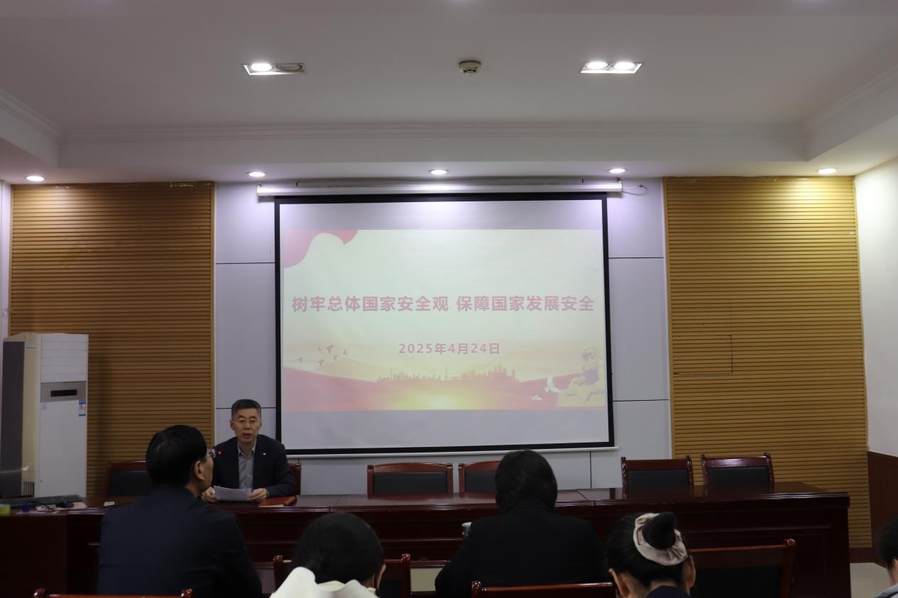 于2025年4月24日上午开展”树牢总体国家安全观,保障国家发展安全”专题思政课学习活动,此次活动由学院党委书记赵琪主讲,学院教师和师生代表参加。
