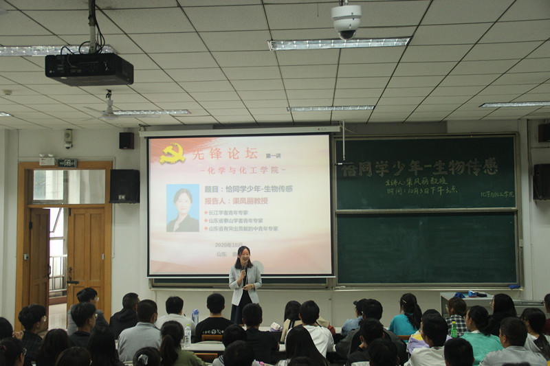 本次邀请到学院渠凤丽教授。渠教授作了题为“恰同学少年-生物传感”的精彩报告。渠教授以如何度过大学时光为主线,从“变、思、勤,从Learn到Research;勇于直面挫败与自己的不足,突破自我;心系家国,饮水思源,做顶天立地的科学研究;用一颗阳光的心面对人生的成败荣辱, 做一个快乐的人”等四个方面,分享了自己的求学经历、研究生培养、生物传感科学研究等经历和感悟,并深入浅出介绍了生物传感创新团队致力于解决生物传感研究选择性、灵敏度及精准性的科学研究思路和成果,引导学生要转变学习的心态和方式,培养科研的钻研精神与态度;保持强烈好奇心和求知欲,对事物、现象和问题不人云亦云,积极思考,培养创新及批判的思维;少功利,多实事,挑战自我,破茧成蝶。最后寄语同学们,恰同学少年,风华正茂;书生意气,挥斥方遒。幽默的话语和浅显易懂的讲述,赢得了在座师生的阵阵掌声。在自由提问环节,渠教授认真细心地回答了同学的问题,澄清了本科生在学习和科研训练上的诸多误区。