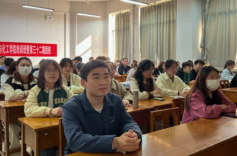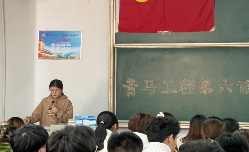 学生会主席王楠主持,组织部副部长牛夏言主讲,“青马工程”大学生骨干培训班学员参加。