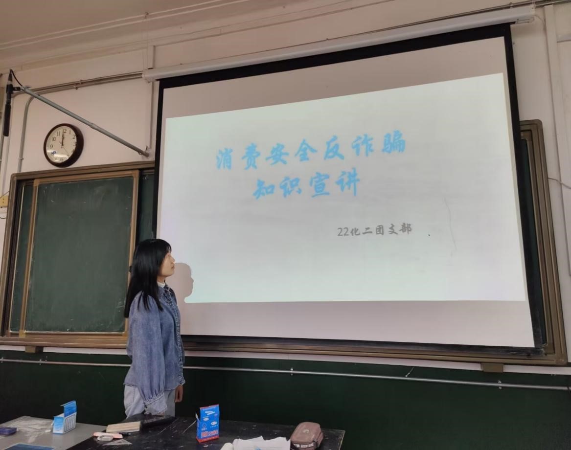 2022级化学师范二班开展消费安全反诈骗宣讲 。活动伊始,各团支部成员积极分享发生在自己身边的关于维护消费者权益的实例,并分享处理解决方案。随后,由团支部成员进行消费安全知识普及,结合国家相关法律条例,深入学习消费者的权利,防止上当受骗。
