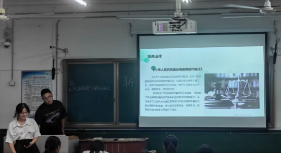 会上,权益部成员以ppt的形式向学生讲述了网络诈骗的相关法律、相关情形,还进行了案例剖析,叮嘱学生在面对各种诱惑时要做好判断,做到忌盲目,多思考。最后播放了防网络诈骗相关视频,加强学生防范意识。