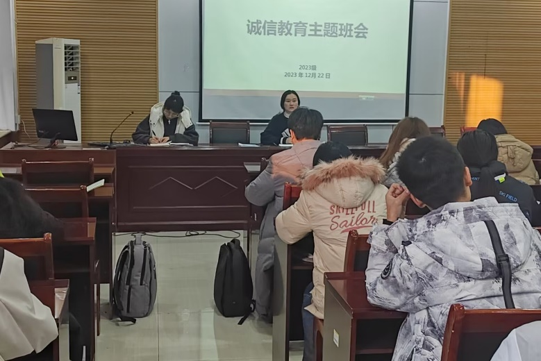 于12月22日举行“诚信考试”主题班会。班会由2023级辅导员黄秉帅、孙兰馨主持,2023级全体学生参加。